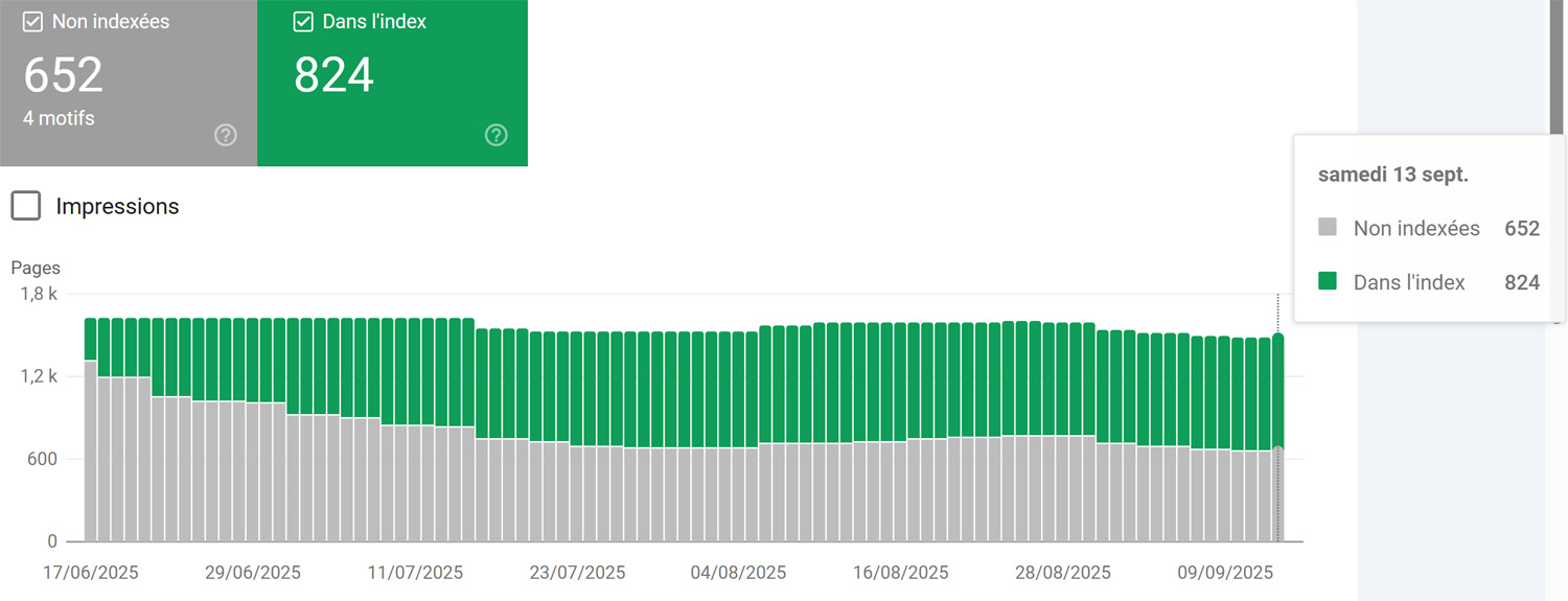 The site has achieved a total of 824 indexed pages as of the publication date of this case study (September 15, 2025).